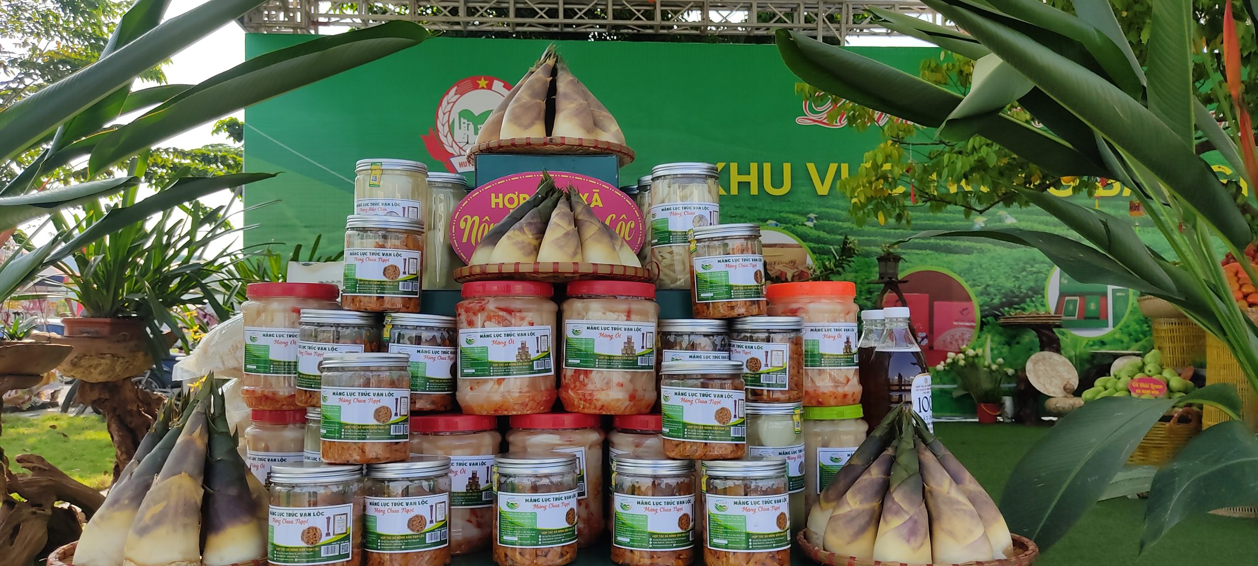 Sản phẩm măng lục trúc trưng bày tại gian hàng trung tâm