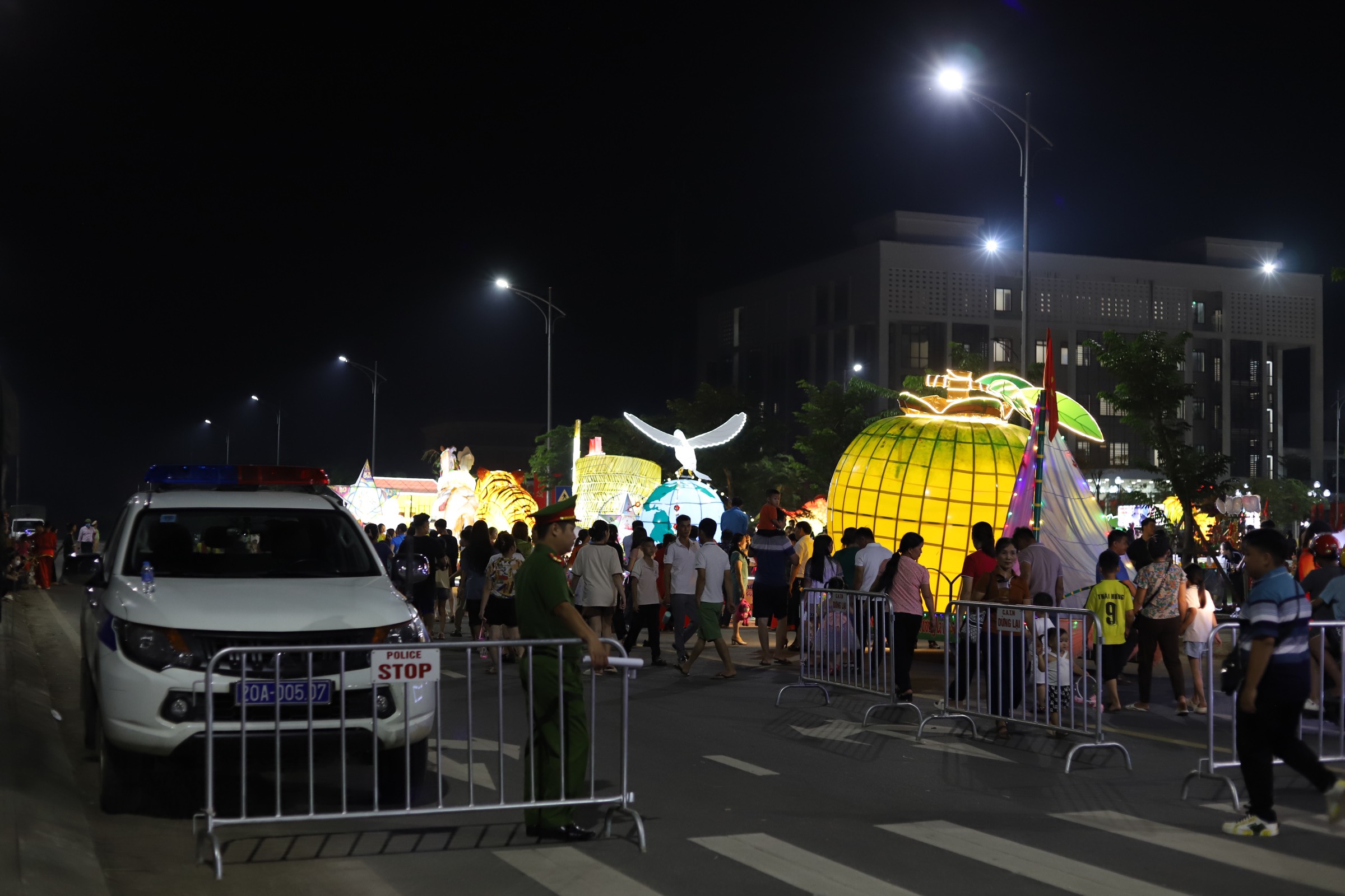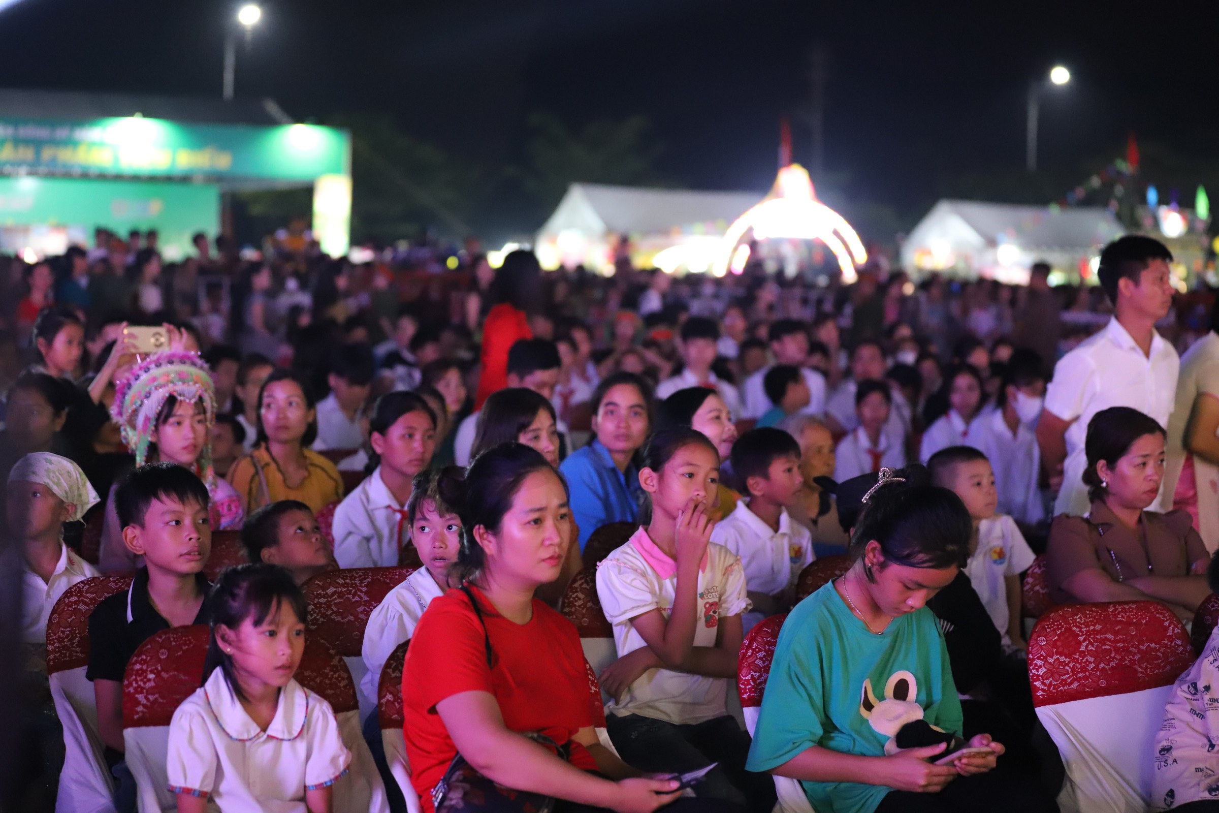 Tiếp đó, trong tiếng nhạc rộn ràng, hàng nghìn đôi mắt vui tươi của trẻ em và phụ huynh cũng như các quan khách, đại biểu đổ dồn về 19 mô hình đèn toả ánh sáng rực rỡ, lung linh sắc mầu diễn diễu xung quanh quảng trường huyện. Đó là những linh vật khổng lồ đủ màu sắc, hình dáng, mô phỏng các nhân vật trong truyện cổ tích, ngụ ngôn, các con vật gần gũi được trẻ em yêu thích hoặc các đặc sản, đặc trưng của địa phương, địa danh gắn với chủ quyền biển đảo,… Tất cả được tạo nên bởi chính những đôi tay tài hoa và trái tim yêu trẻ của người dân huyện nhà.