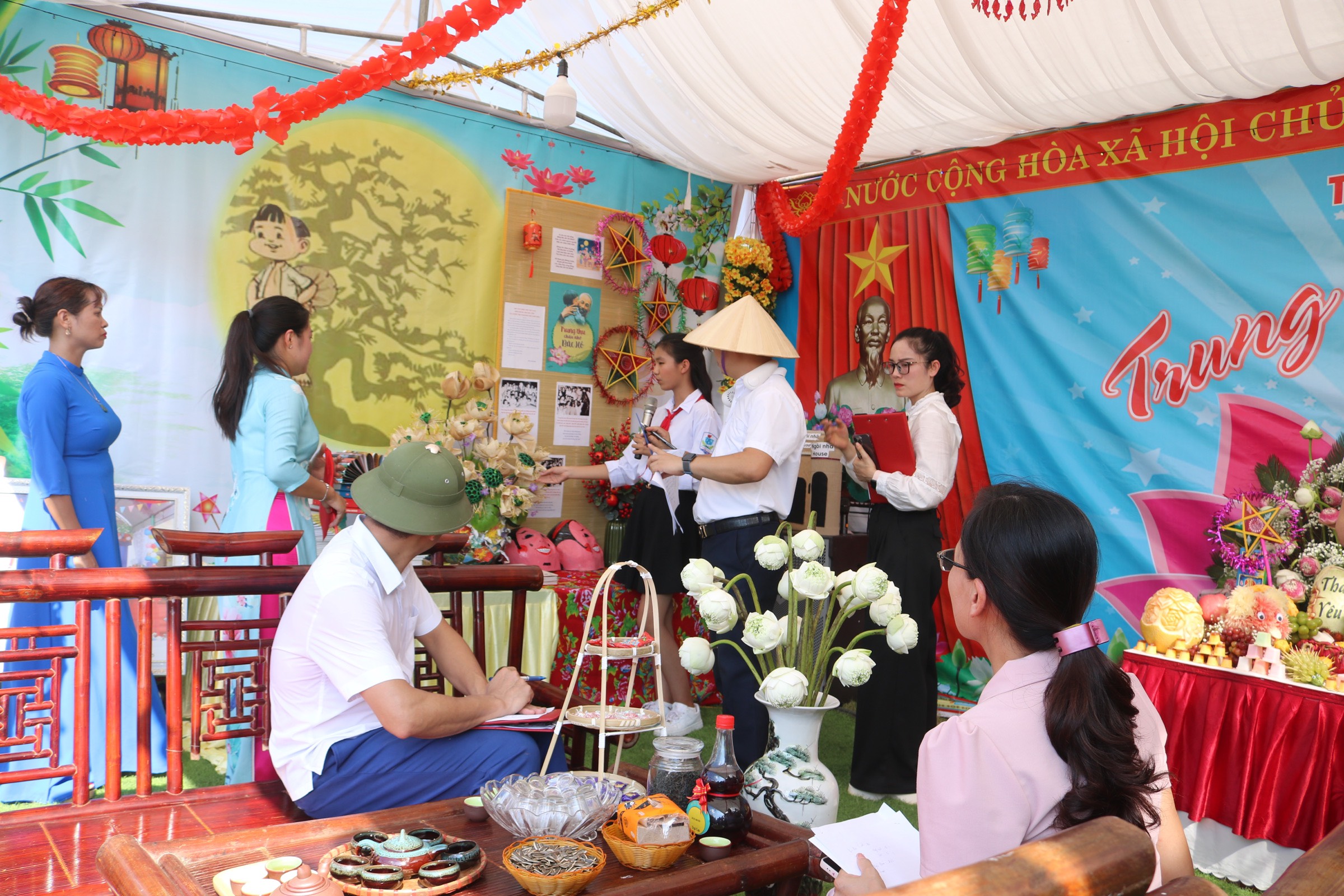 Ban Giám khảo chấm phần thi trang trí trại và mâm cỗ Trung thu