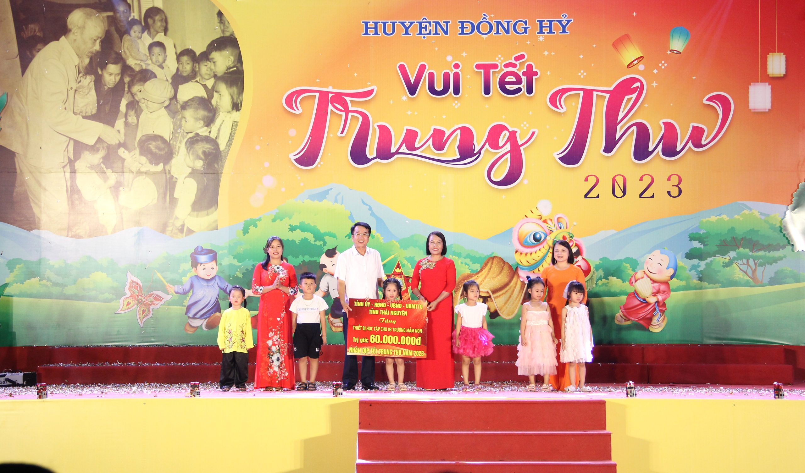 Phát biểu tại chương trình, đồng chí Vũ Quang Dũng, Phó Bí thư Huyện ủy, Chủ tịch UBND huyện Đồng Hỷ, Trưởng Ban Tổ chức tết Trung thu nhấn mạnh: “Trong năm qua, cấp ủy, chính quyền huyện Đồng Hỷ luôn tự hào khi nhận được nhiều tin vui, các cháu thiếu niên, nhi đồng trong huyện đã nỗ lực vượt khó, luôn tự giác trong học tập, chăm ngoan, biết giúp đỡ ông bà, cha mẹ làm nhiều việc tốt. Nhiều cháu giành giải thưởng cao trong các kỳ thi, vươn lên đạt thành tích cao trong học tập, rèn luyện. Tôi kêu gọi các cấp, các ngành, các cơ quan, đơn vị, địa phương và các gia đình trong thời gian tới tiếp tục dành tình cảm và sự quan tâm, với nhiều hoạt động thiết thực chăm lo cho các cháu thiếu nhi trong ngày tết Trung thu, đặc biệt đối với các cháu có hoàn cảnh khó khăn, các cháu ở vùng sâu, vùng xa, tạo những điều kiện thuận lợi nhất để các cháu được học tập, sáng tạo, vui chơi bổ ích… để tất cả các trẻ em đều được quan tâm phát triển toàn diện, được sống trong tình yêu thương, trong môi trường sống an toàn, lành mạnh”.